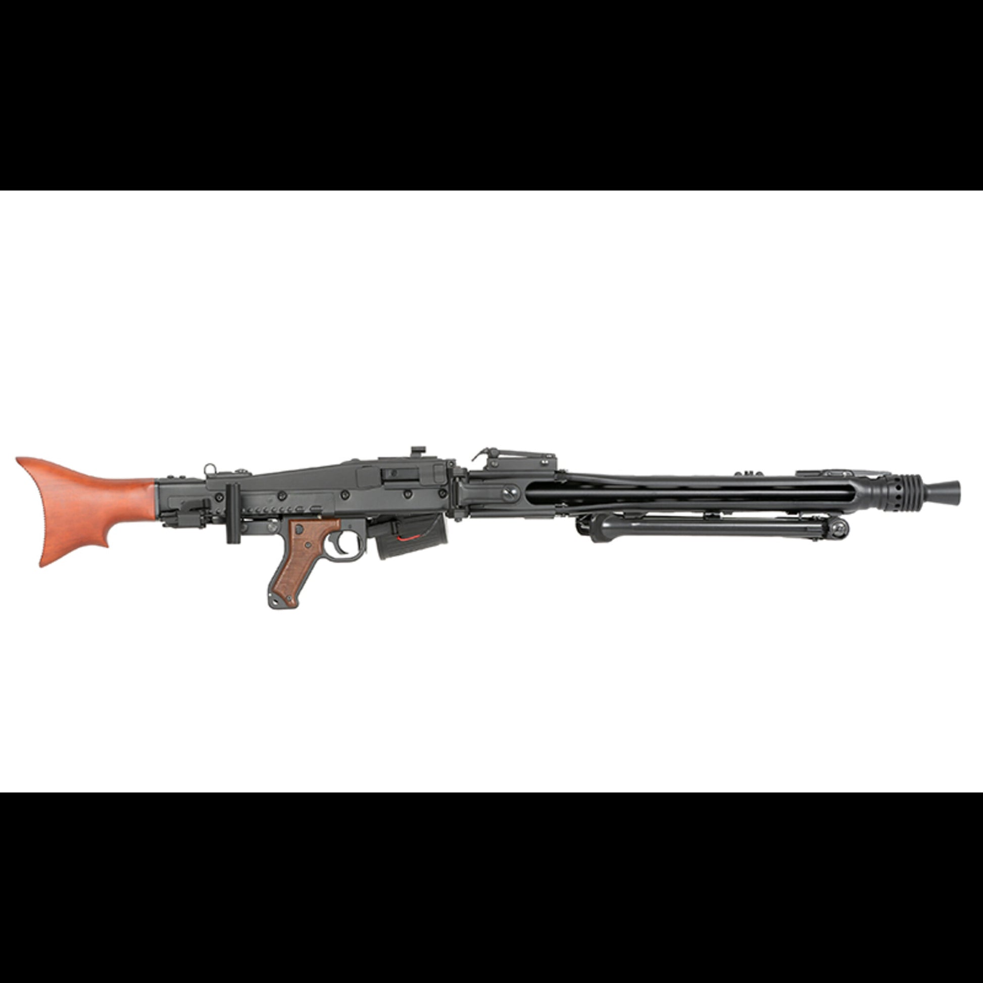 Die AGM MG42 Full Metal AEG ist ein schweres, support-orientiertes Airsoft-Maschinengewehr auf Basis der historischen MG42-Plattform. Der durchgehende Metallaufbau, der stabile Metall-Receiver und der Schaft aus Echtholz sorgen in Kombination mit dem integrierten Zweibein für ein sehr robustes Handling im Spielfeldbetrieb. Durch das große elektrische Boxmagazin ist dieses Modell klar auf dauerhafte Feuerunterstützung ausgelegt.