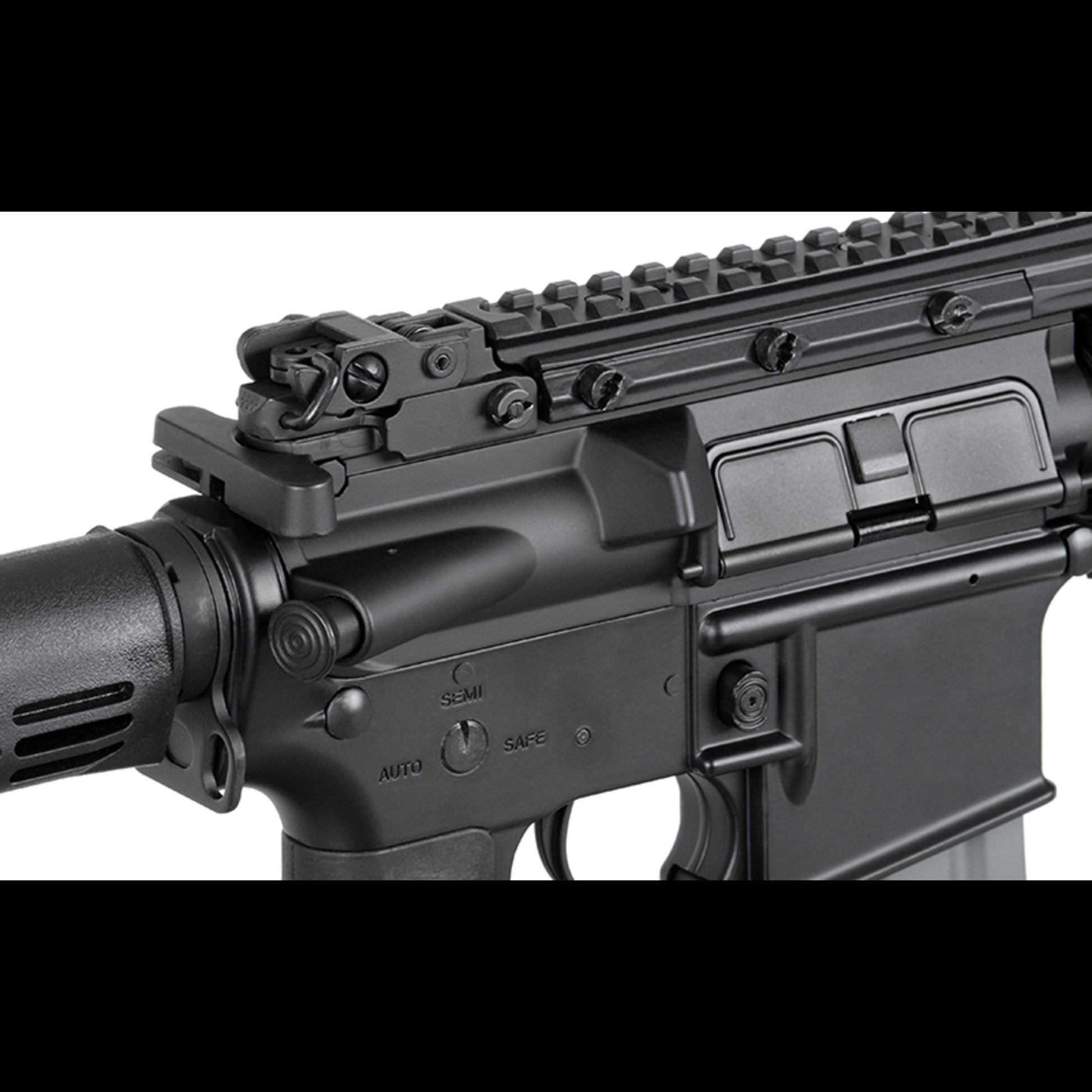 Dazu kommen Flip-Up Sights, ein verstellbarer Schaft und die übliche AR15/M4-Magazin-Kompatibilität für einfache Versorgung.