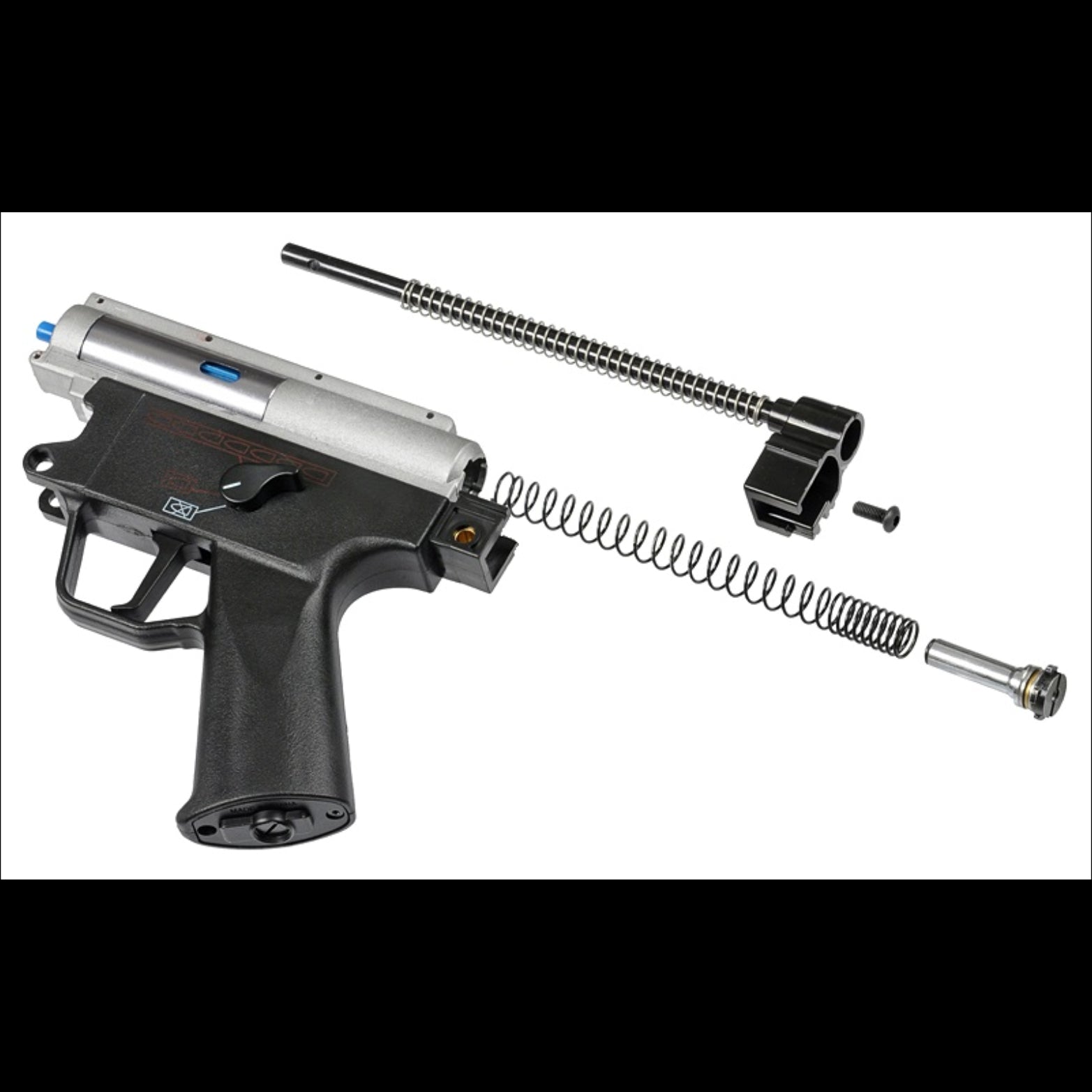 Im Lower sitzt die V2-Basis mit Platinum Gen 2 Internals: Alu-Pistonhead, Stahlzahn-Piston und Alu-Cylinderhead für ein sauberes, langlebiges Setup. Das Federschnellwechselsystem unterstreicht den Wartungsfokus: Anpassungen und Service sind deutlich effizienter möglich, was für den Betrieb im deutschen Rahmen besonders praktisch ist.
