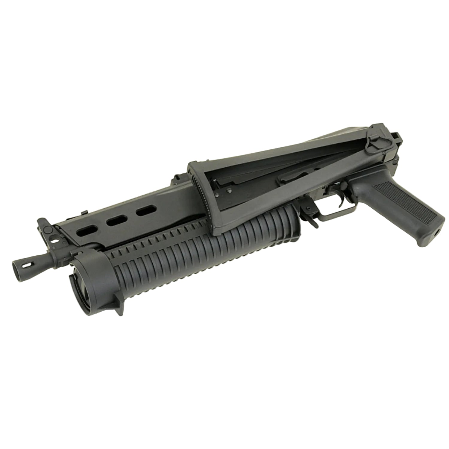 Klassischer Bizon-Aufbau mit seitlich klappbarem Stock und einem sehr flachen Profil. Optik-Montage läuft über den AK Side-Mount, wenn du ein Side-Rail-Mount nutzt.