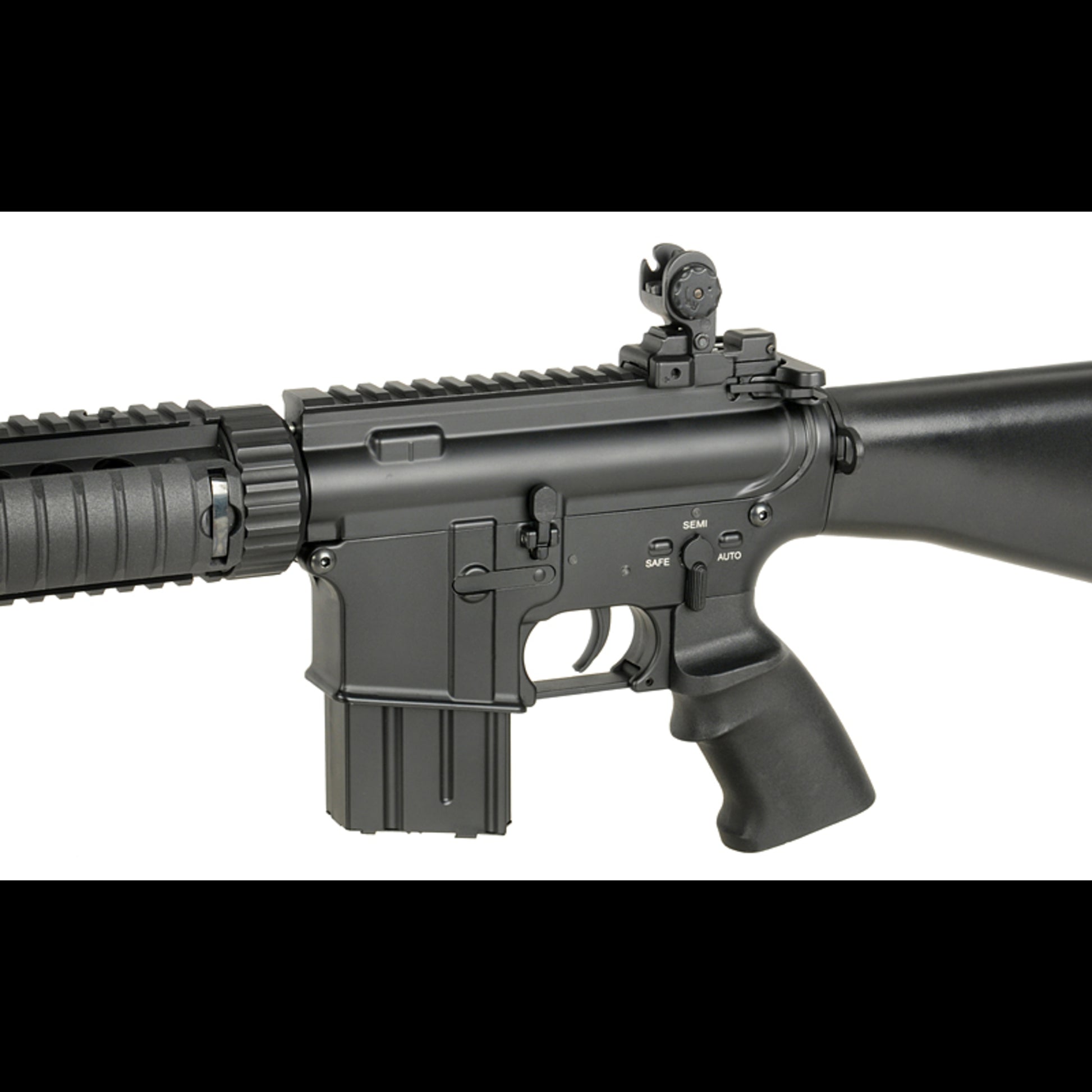 Gefüttert wird das System über AR15/M4 Midcap-Magazine . Dazu kommt ein einstellbares Hop-Up, damit du das Flugbild sauber einstellst.