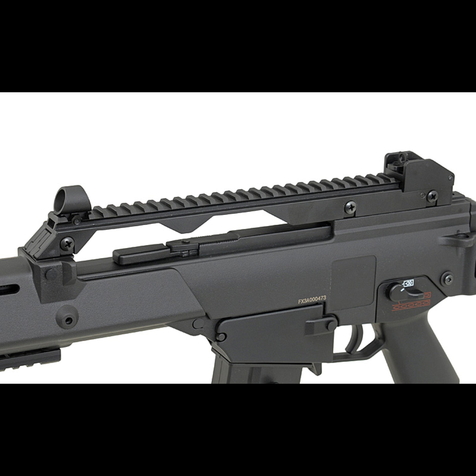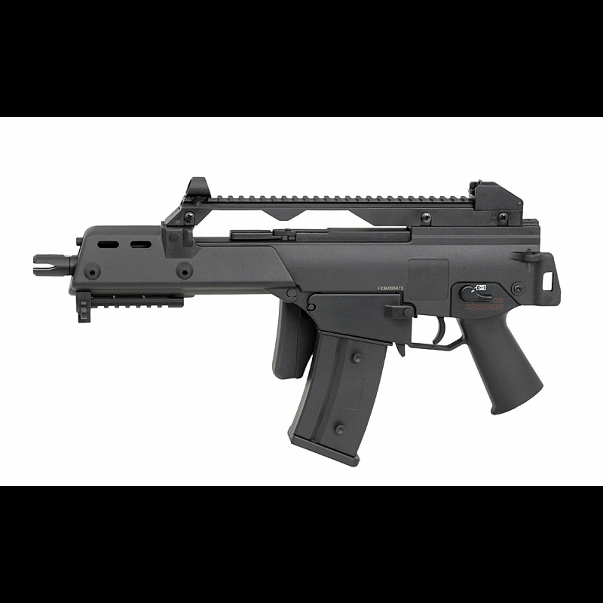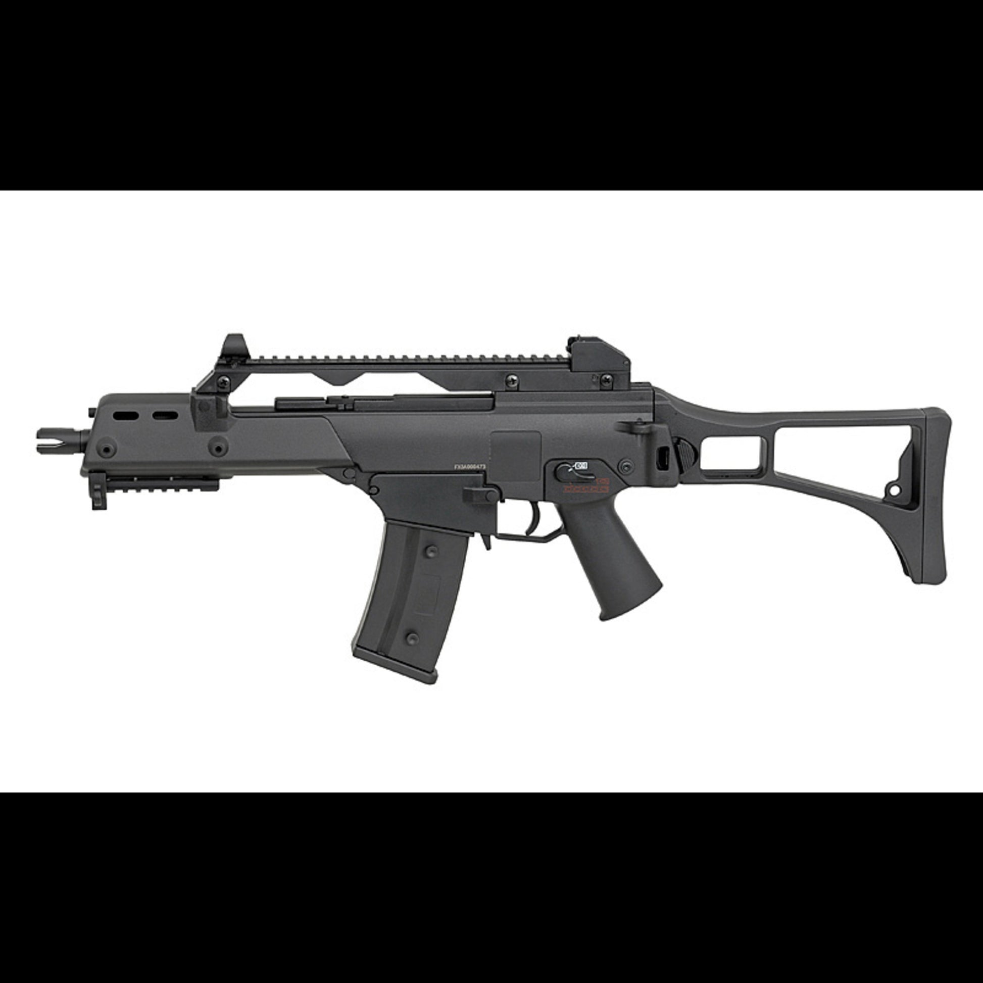 Außen ist das ein klassischer G36 Nachbau in C-Bauform: kompakte Proportionen, schlanker Handguard und oben eine klare Basis für Optik und Visierlösung.