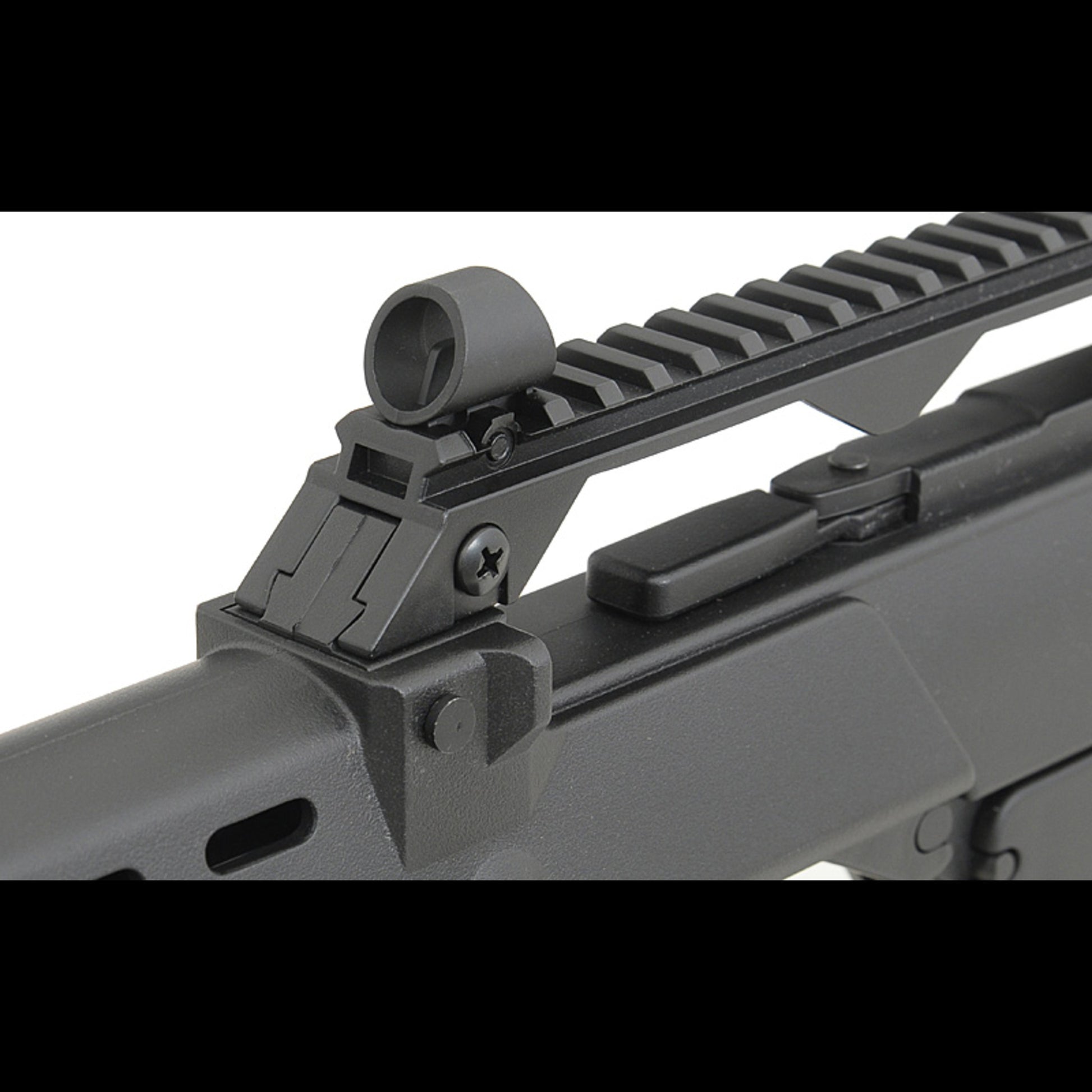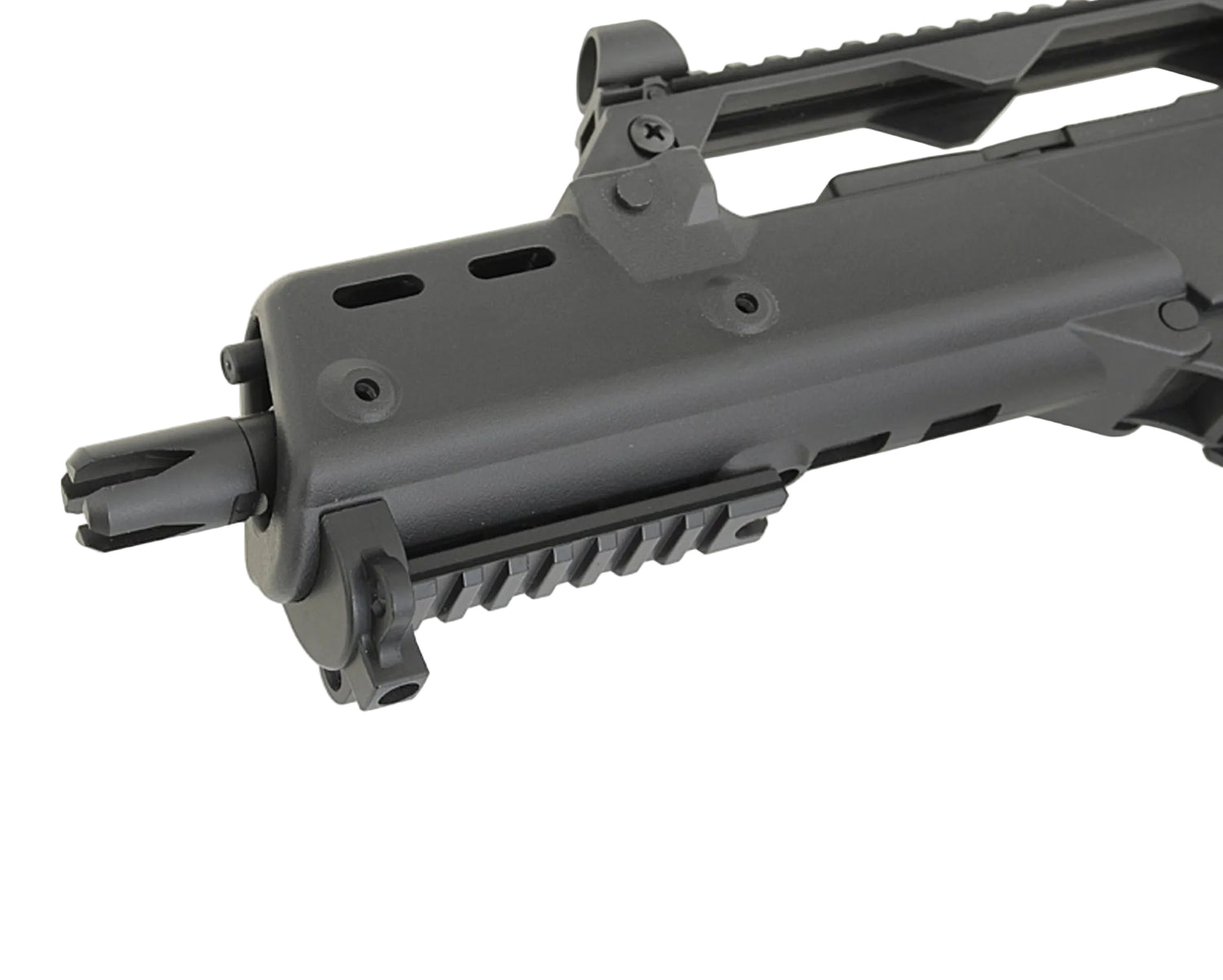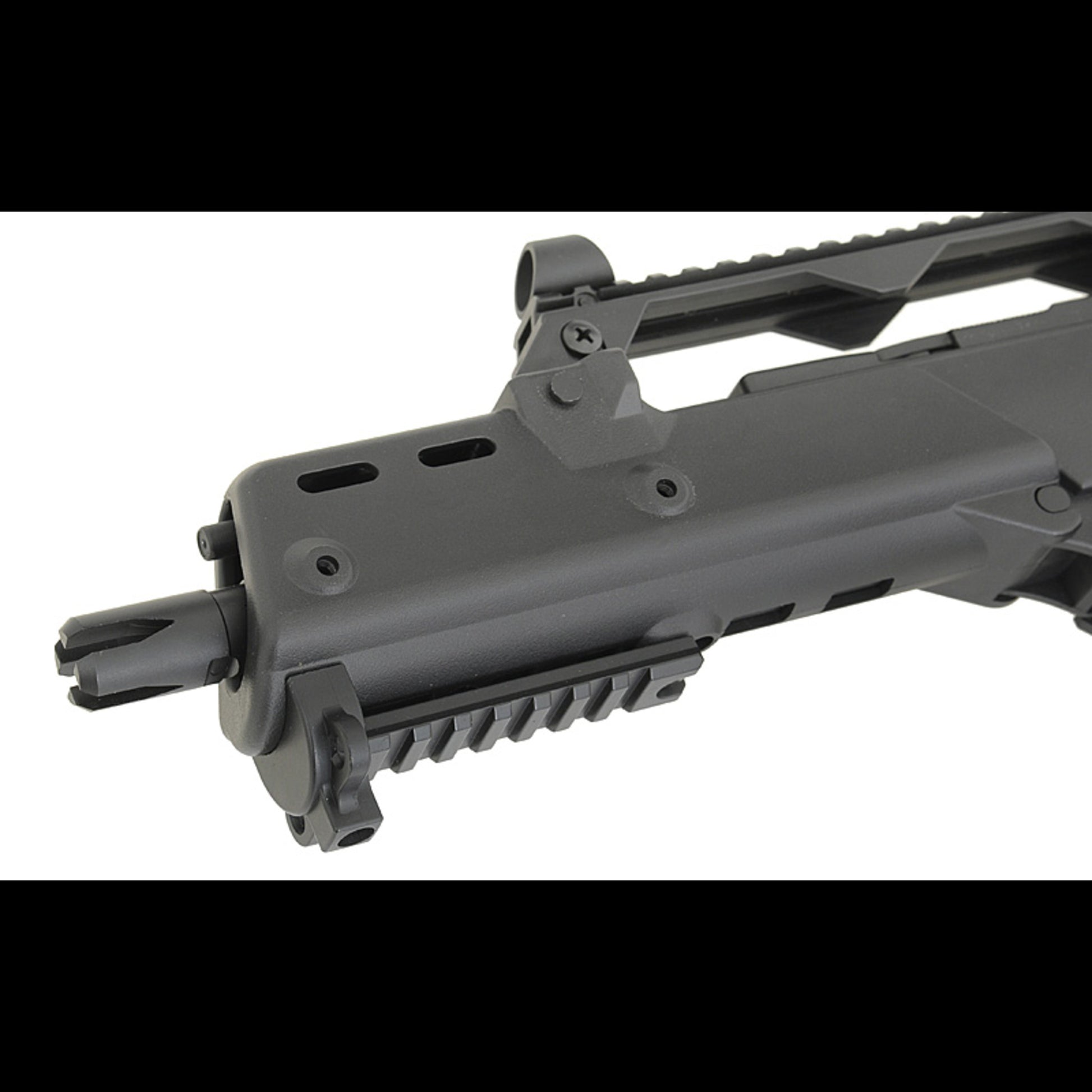 Außen ist das ein klassischer G36 Nachbau in C-Bauform: kompakte Proportionen, schlanker Handguard und oben eine klare Basis für Optik und Visierlösung.